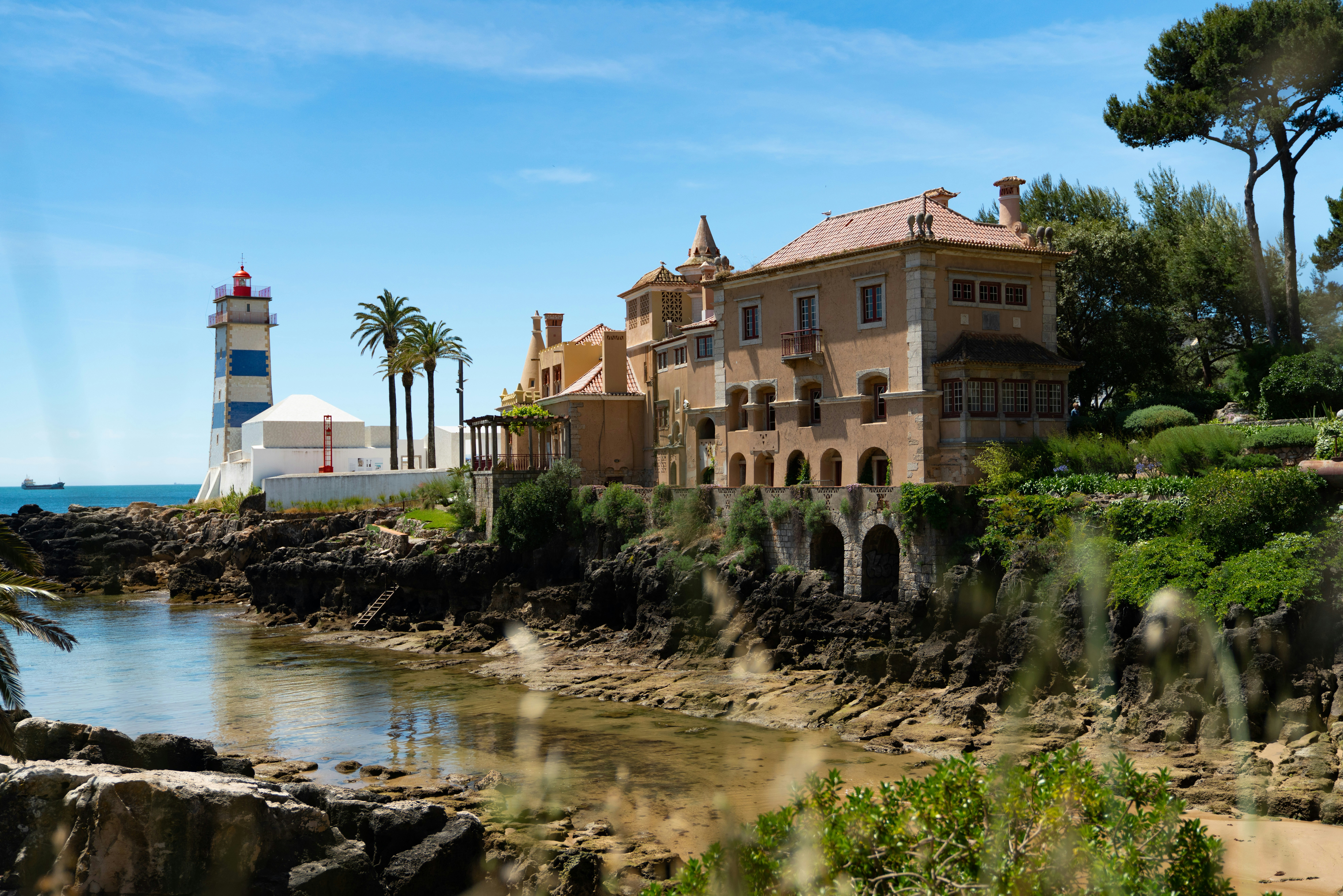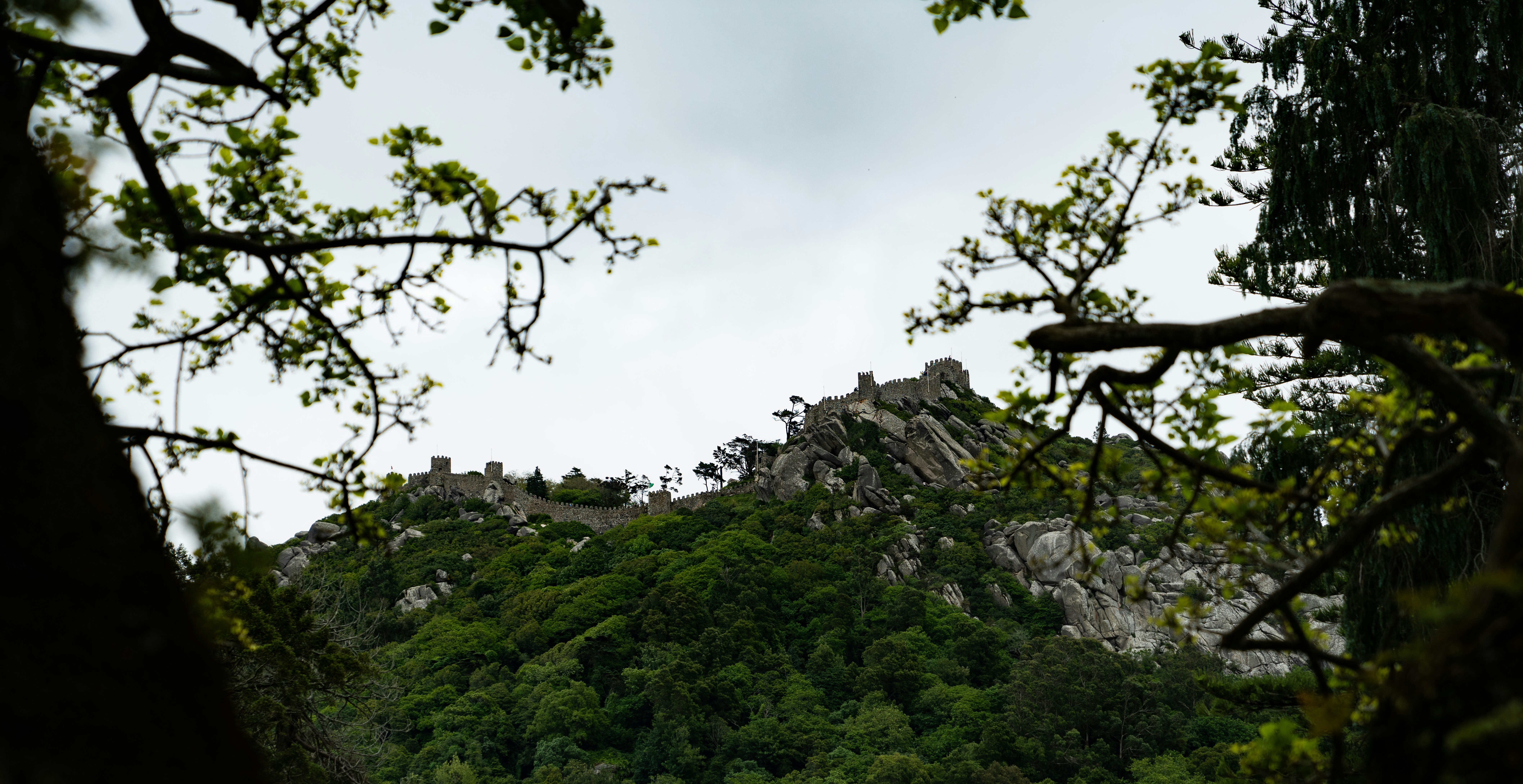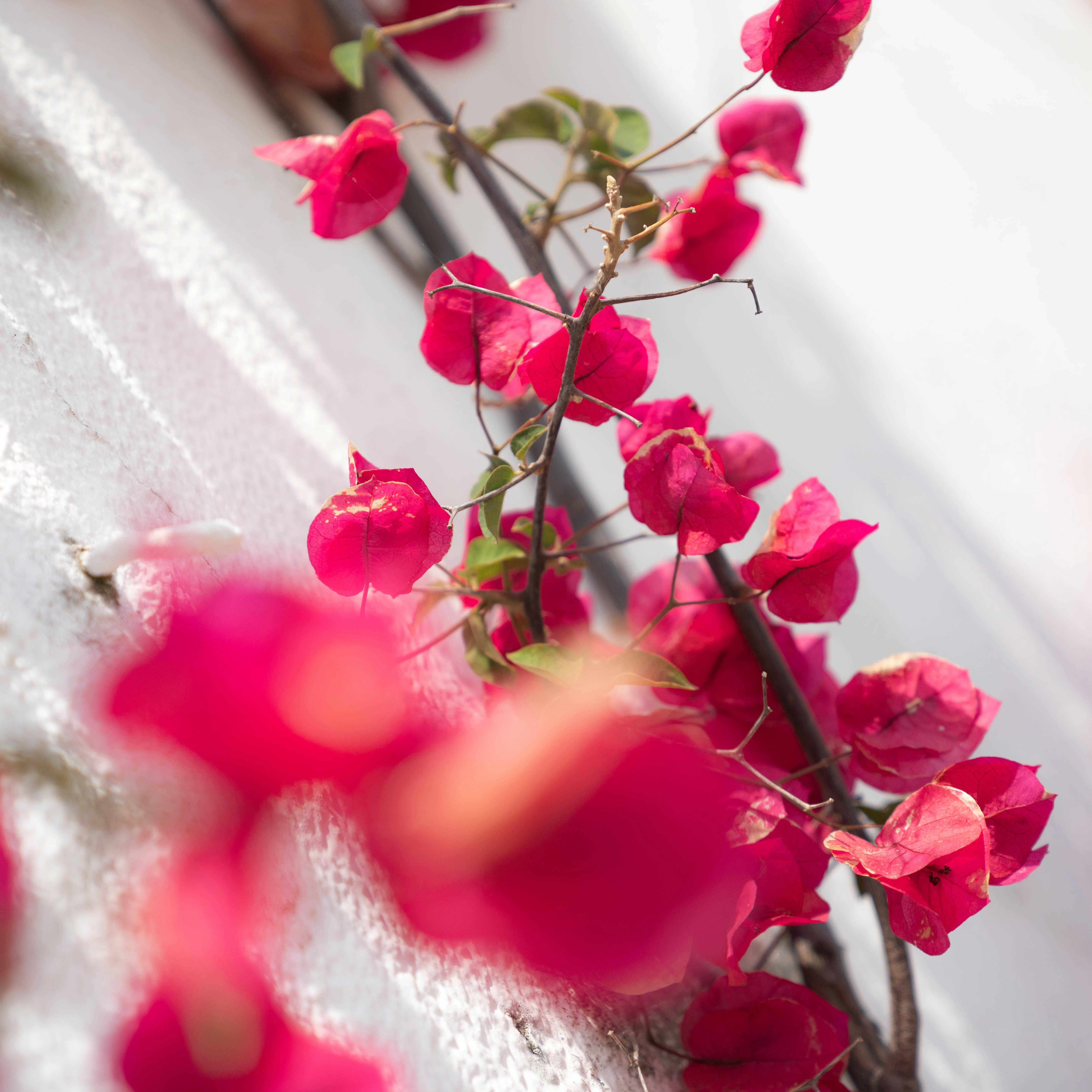 - I took this photo in Sintra, walking along the coast. The flowers were growing on a vine that climbed up the white plaster wall of a staircase. I tilted the horizon to point the vines straight up through the frame and play with the long shadows they cast against the plaster.