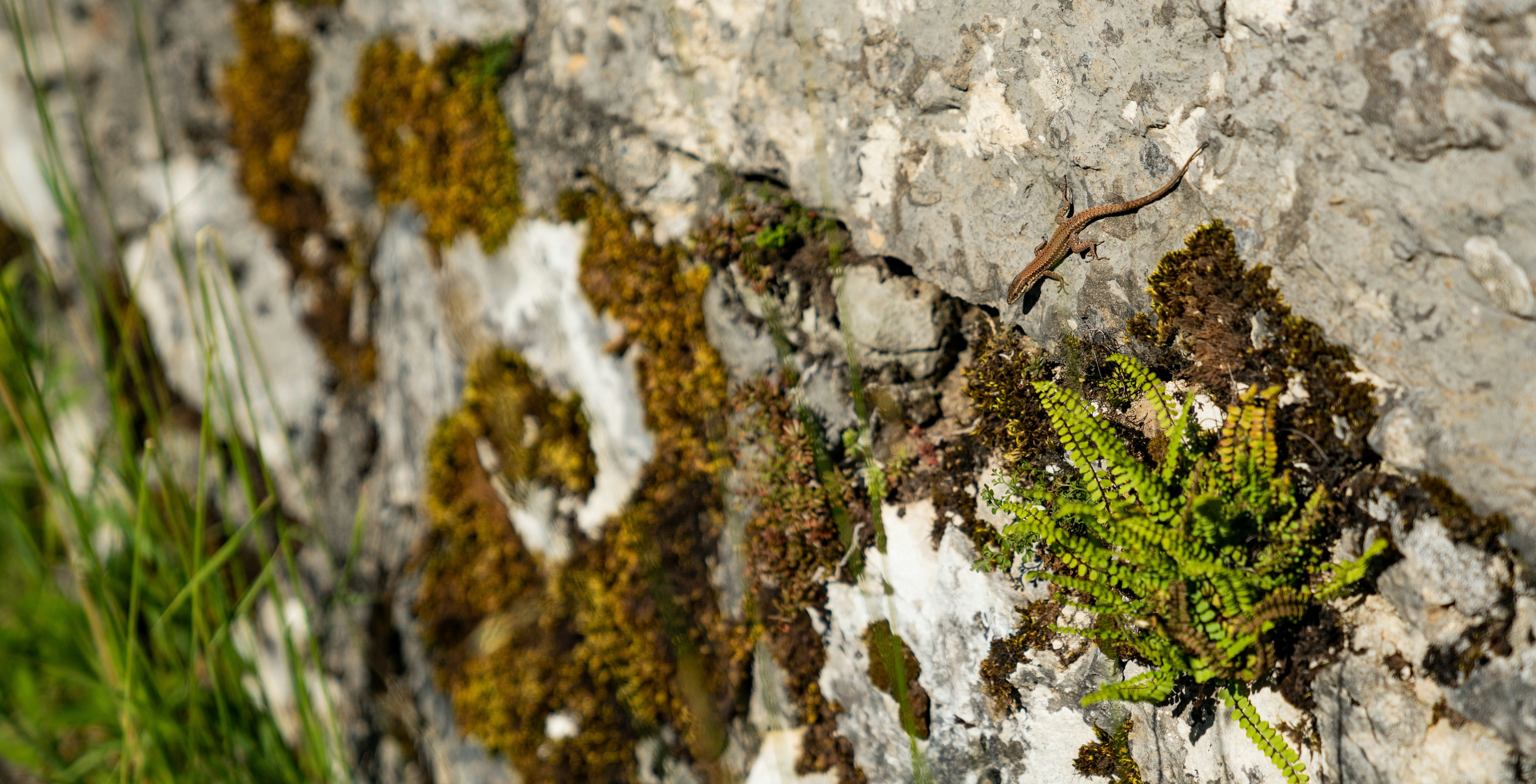 - A lizard clings to the stone walls lining the Klötzli vineyard in Ligerz, Switzerland